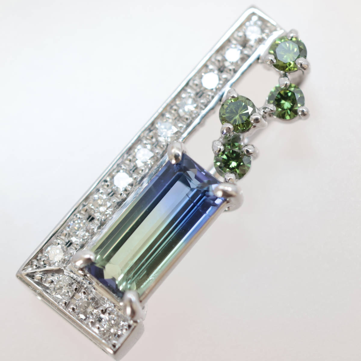 - K18 WG バイカラータンザナイト 1.05ct ダイヤモンド ペンダント トップ タンザナイト