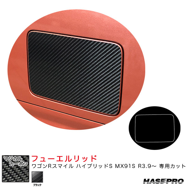 - マジカルカーボン フューエルリッド ワゴンRスマイル ハイブリッドS MX91S R3.9~ カーボンシート【ブラック】 ハセプロ CFSZ-20 ht