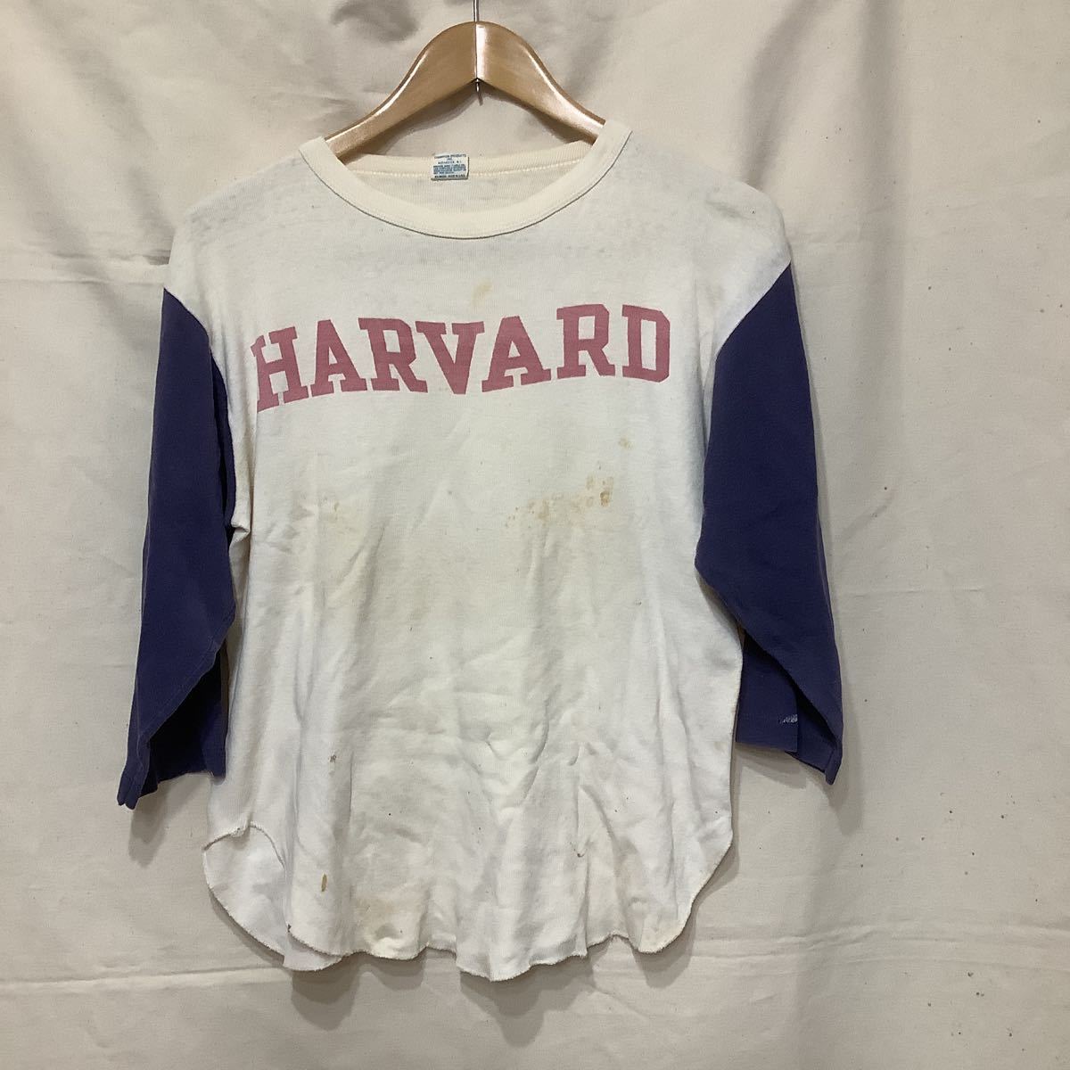 - G10.ビンテージチャンピオン染み込みプリント七分Tシャツ古着アメカジUSA製アメリカ製オリジナルフリー&インナーマイフリーダム