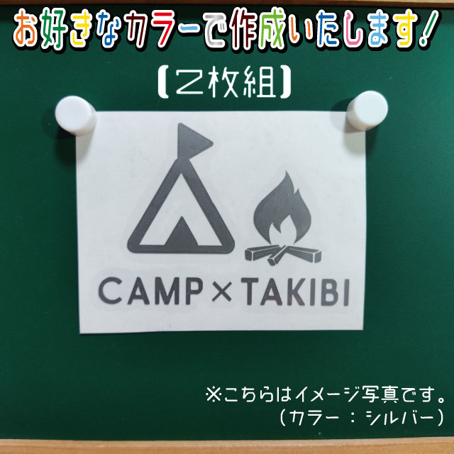 - CAMP焚き火①ステッカー2枚組 文字絵柄だけ残るカッティングステッカー・車・カブ・二輪 CAMP・キャンプ・焚き火 リアガラス