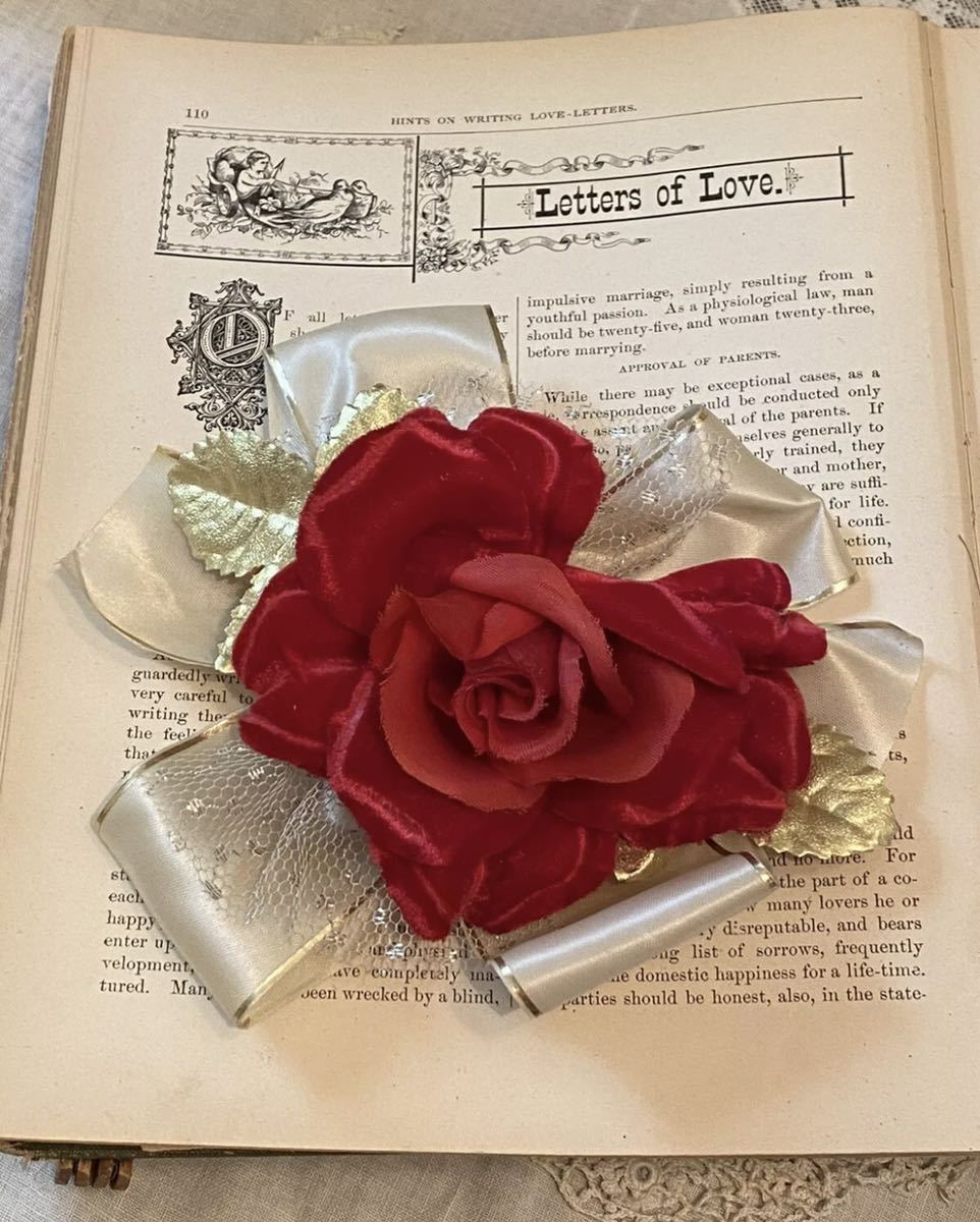 - 薔薇クリスマスコサージュ花ブローチ帽子デコレーション昭和レトロ ビンテージ造花アンティーク 布花ハンドメイド手芸ブーケ資材フラワー