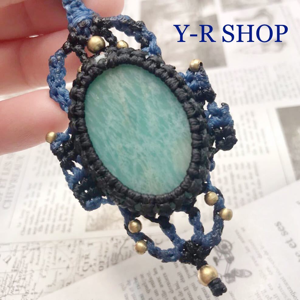 - 天然石★大粒アマゾナイトのマクラメ編みネックレス★レディースメンズペンダントカラーストーンアクセサリーエスニックインドY-R新品宝石