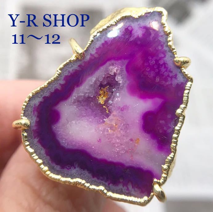 > 天然石★11号12号★パープルドルジーアゲートのゴールド加工リング★レディース指輪カラーストーンアクセサリーエスニックインドY-R新品