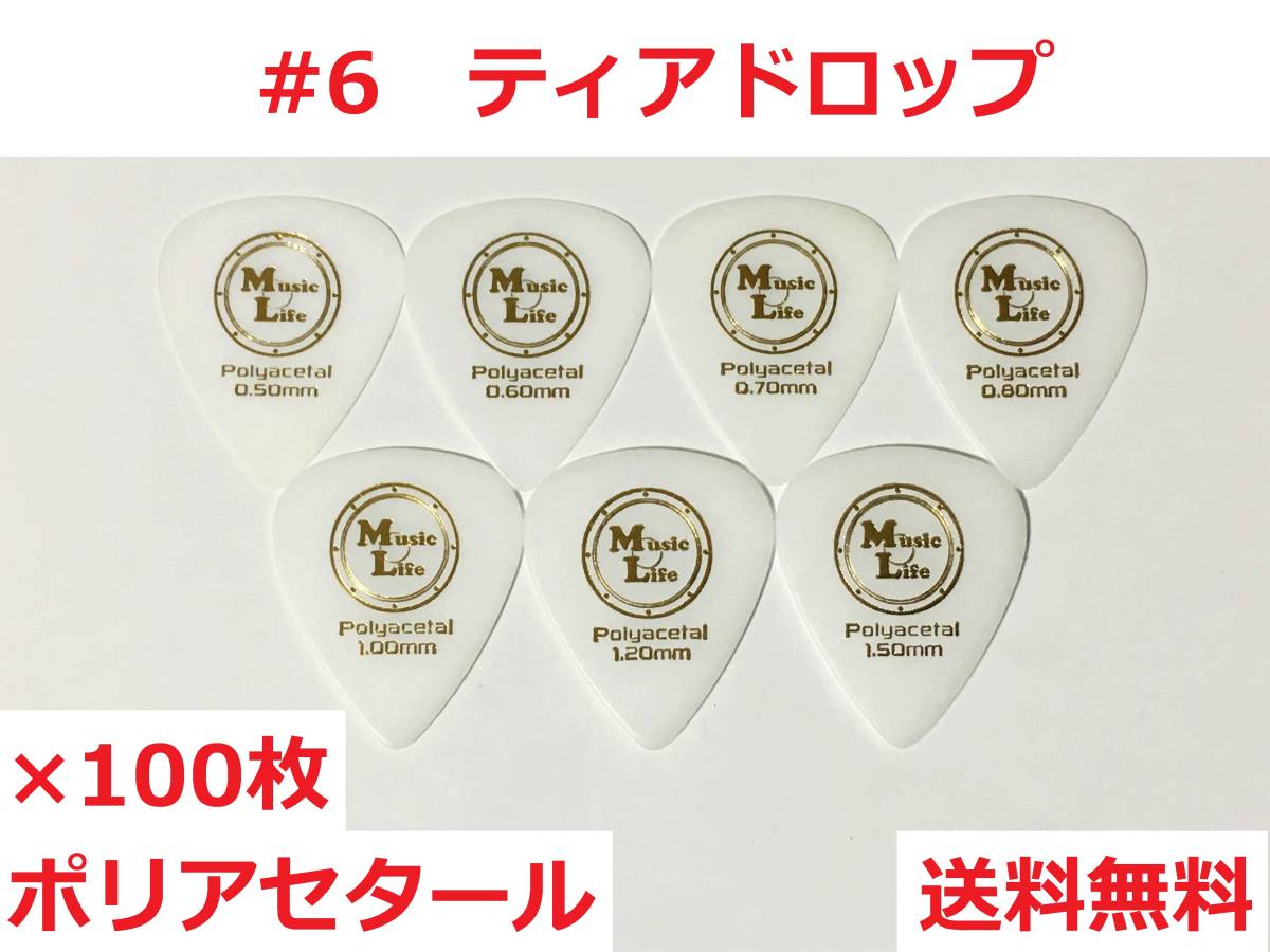 > 【1.20mm×100枚】Teardrop Polyacetal (ポリアセタール) ティアドロップ ピック MLピック #6【送料無料】