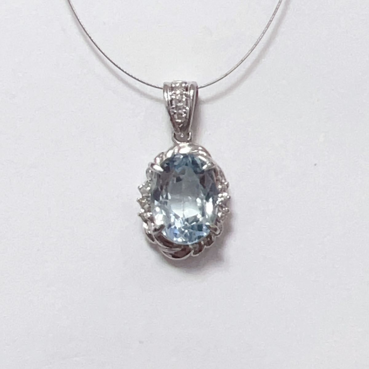 - PT900 アクアマリン ダイヤ ネックレス ペンダントトップ