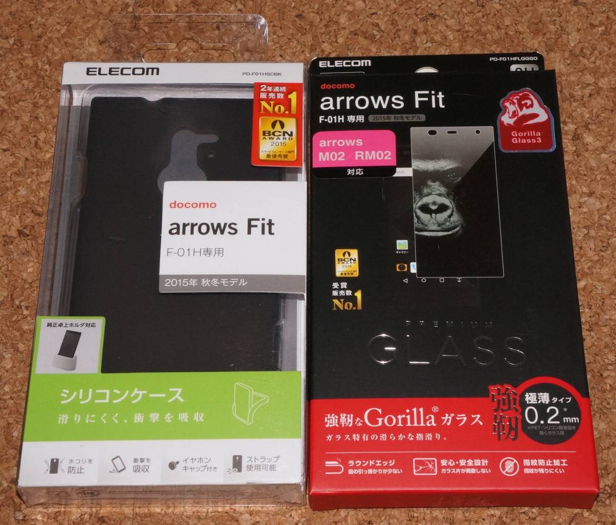 > ★新品★ELECOM arrows Fit F-01H シリコンケース ブラック + ゴリラガラス 外箱傷み