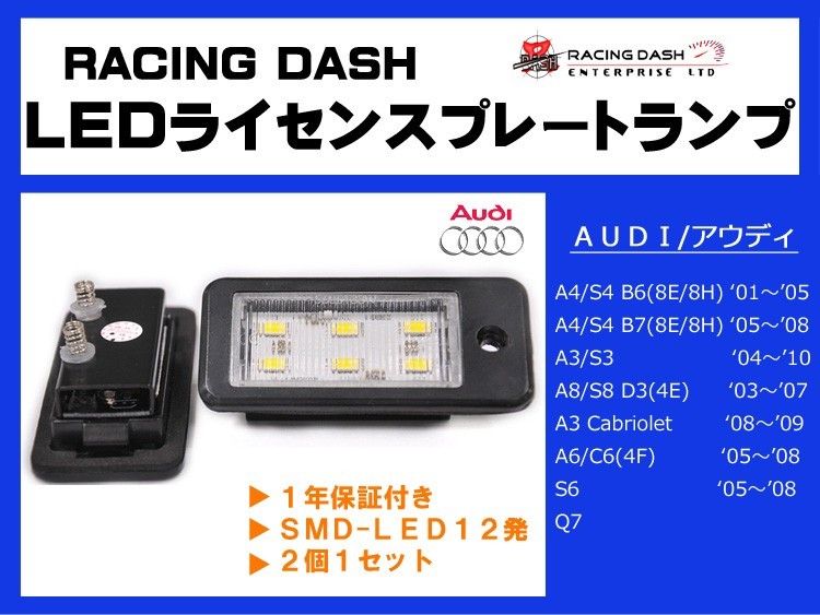 - R-DASH製 アウディ A4/S4 B7 LEDライセンスプレートランプ 2個