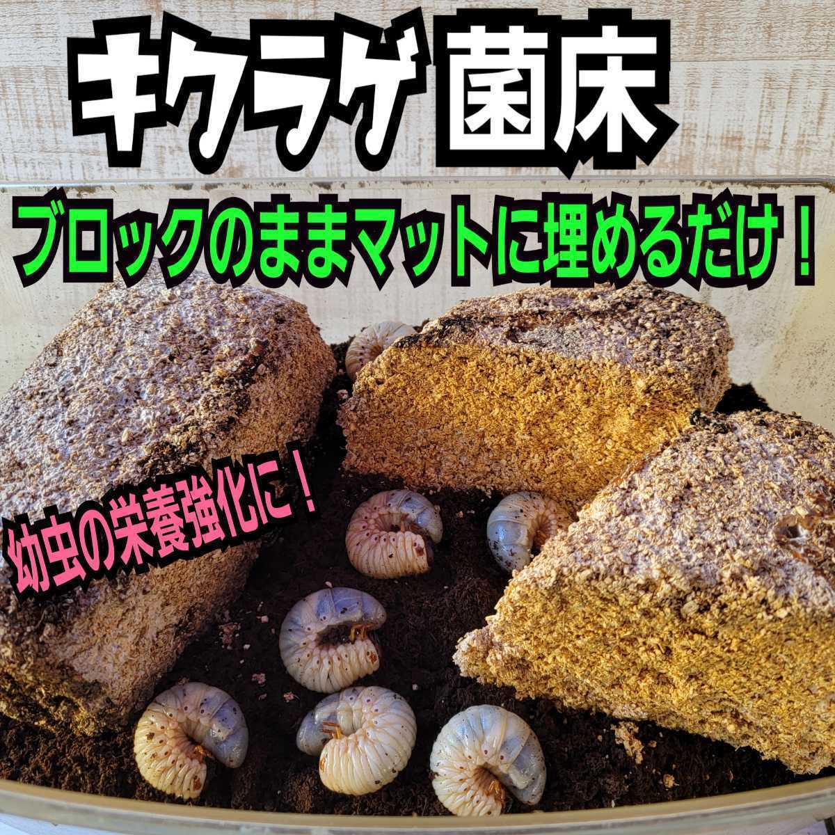 > カブトムシ幼虫の栄養強化に!キクラゲ菌床【2ブロック】マットに埋めるだけで幼虫がモリモリ食べます!クワガタの産卵床にも クヌギ100%