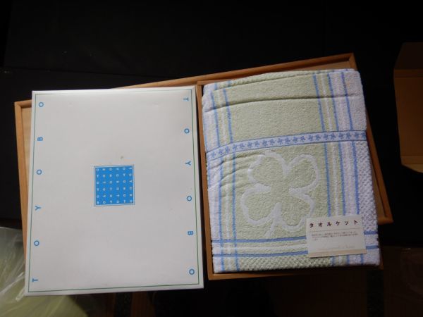 - 未使用 カバー シーツG230123 140x190cm 東洋紡4210 ジャガード 緑タオルケット トーホー シミあり 押入長期保存