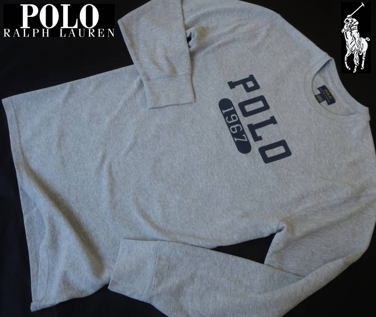 - 新品★ラルフローレン★シックな グレー杢 サーマル ロンT★長袖 Tシャツ★ネイビー ロゴプリント XL★POLO RALPH RL☆614