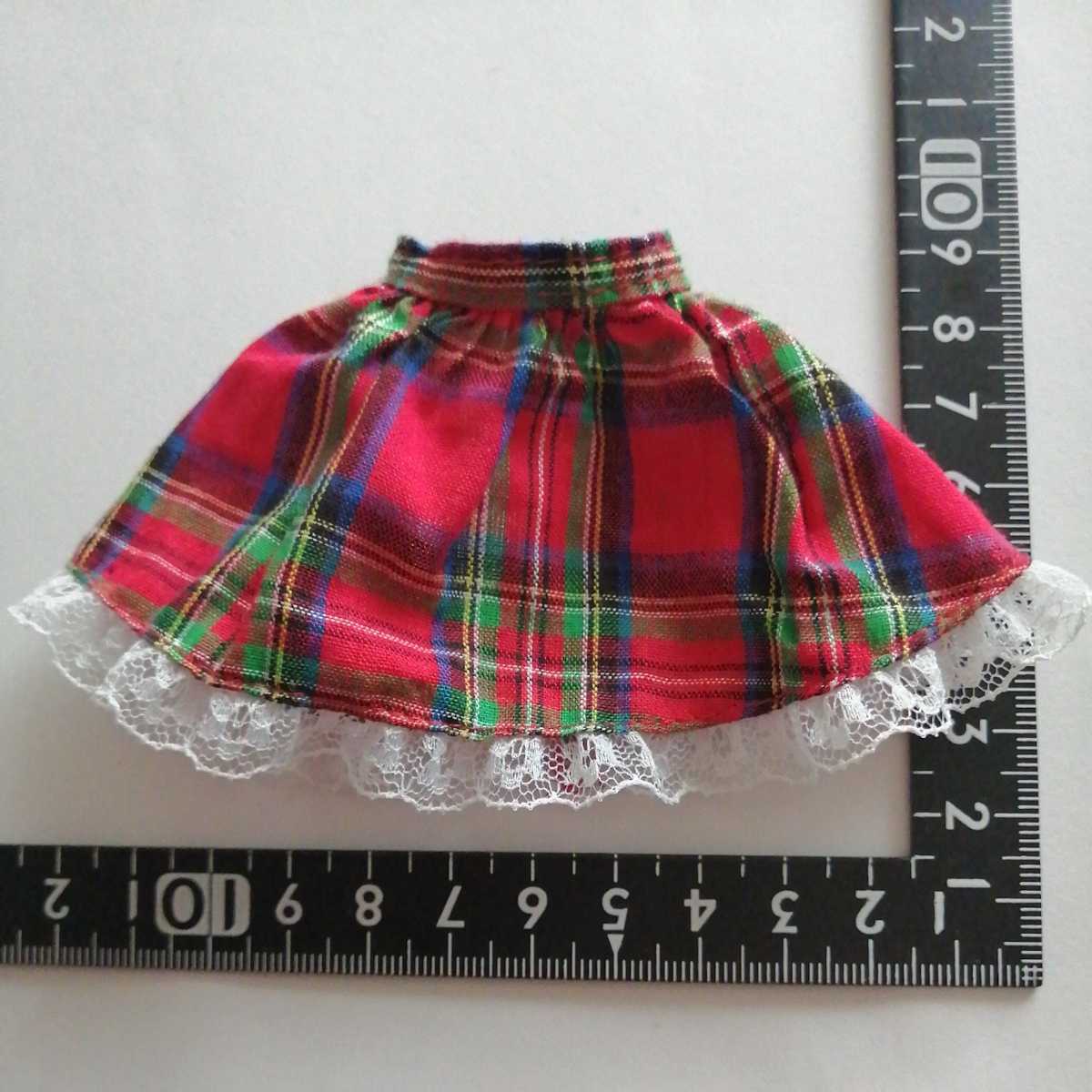 - 2r519 人形用 赤 チェック ミニスカート スカート ピュアニーモ リカちゃん ブライス momoko