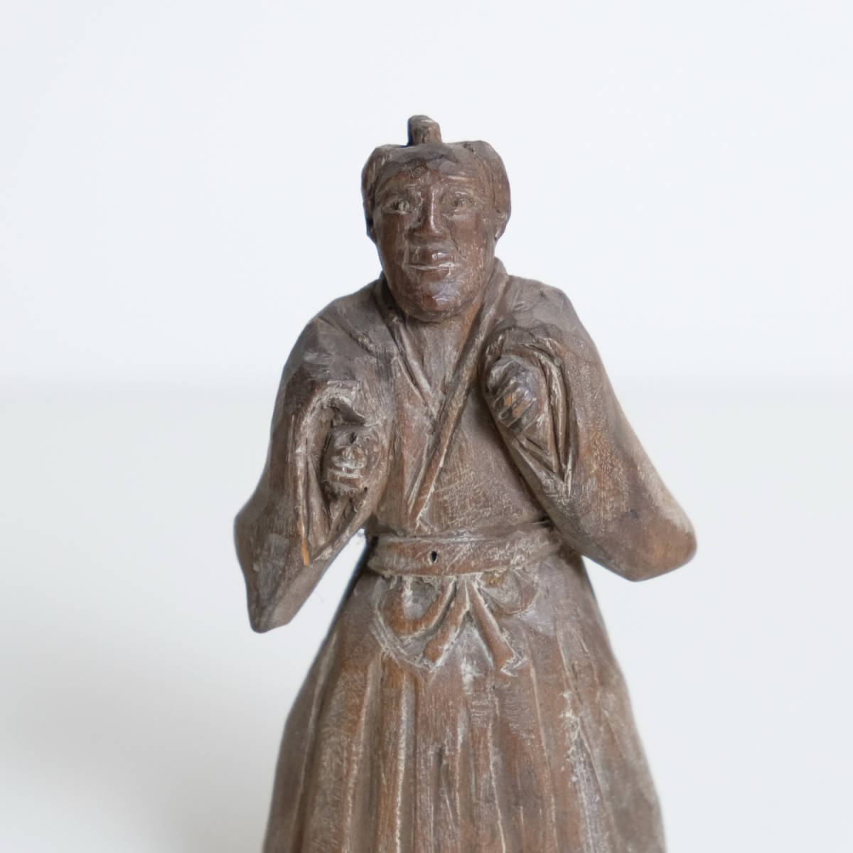 - 古い木彫りの侍 置物 オブジェ 古道具 古民芸 骨董 アンティーク 飾り