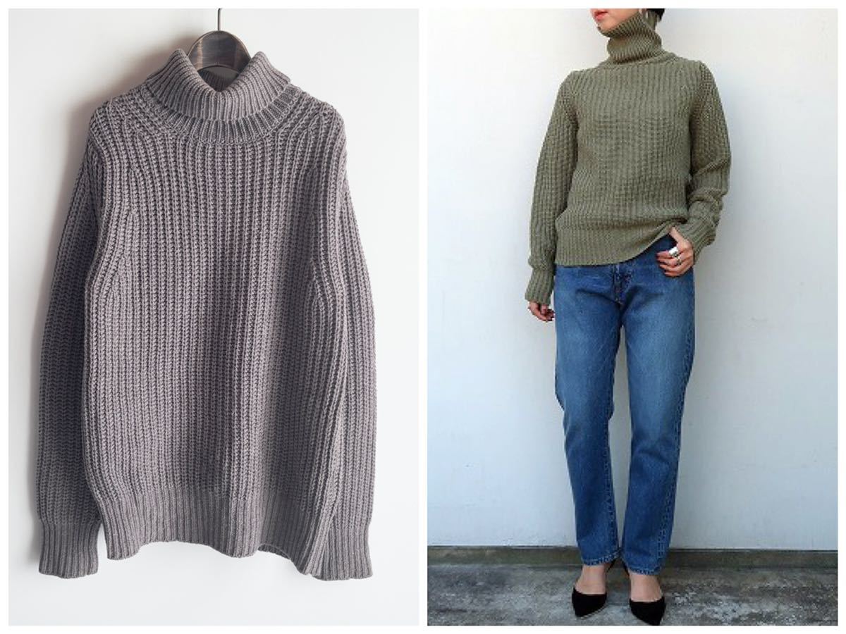 > SLOANEスローン 3Gスーパージーロン畦編みタートルネック サイズ3 グレー系 ハイネックセーター ラムウール ローゲージ 秋冬