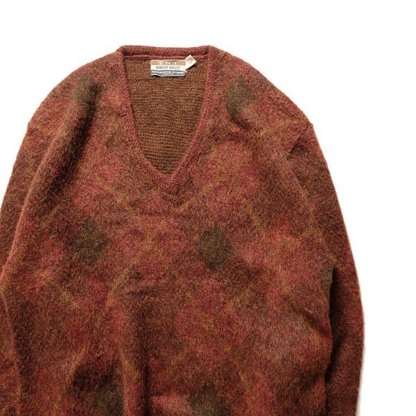 > 60's USA製 ROBERT BRUCE アーガイル Vネック モヘアニットセーター (M) ロバートブルース ヴィンテージ モヘヤ 60年代 ビンテージ