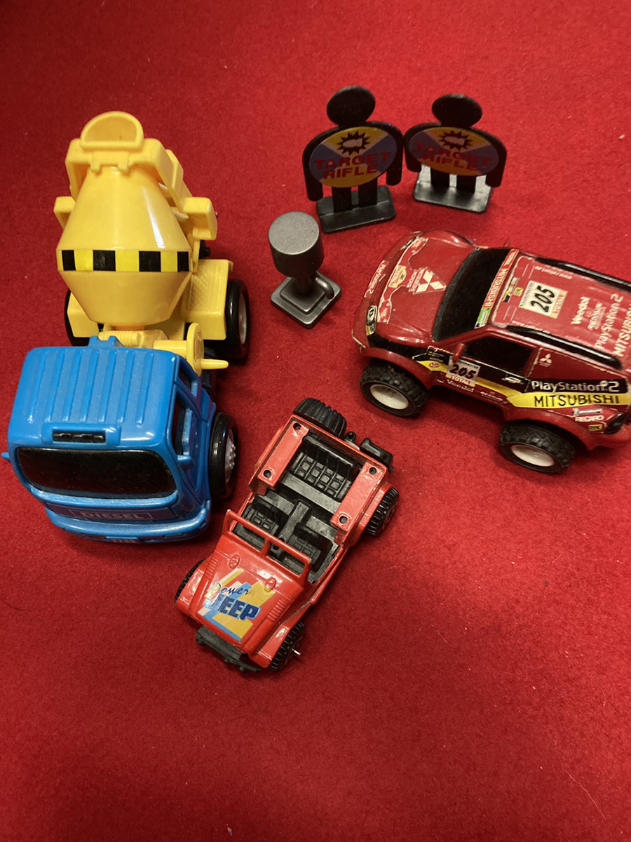 > 【ミニカーセット・おもちゃ箱】DIESELミキサー車 三菱パジェロパリダカ JEEP オープン 他 中古 保管品【23/01 TY-1B】