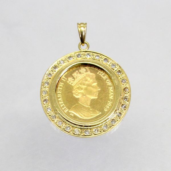- ◎中古美品◎18金枠 ダイヤ 0.15ct 20分の1オンス 純金コイン ペンダント