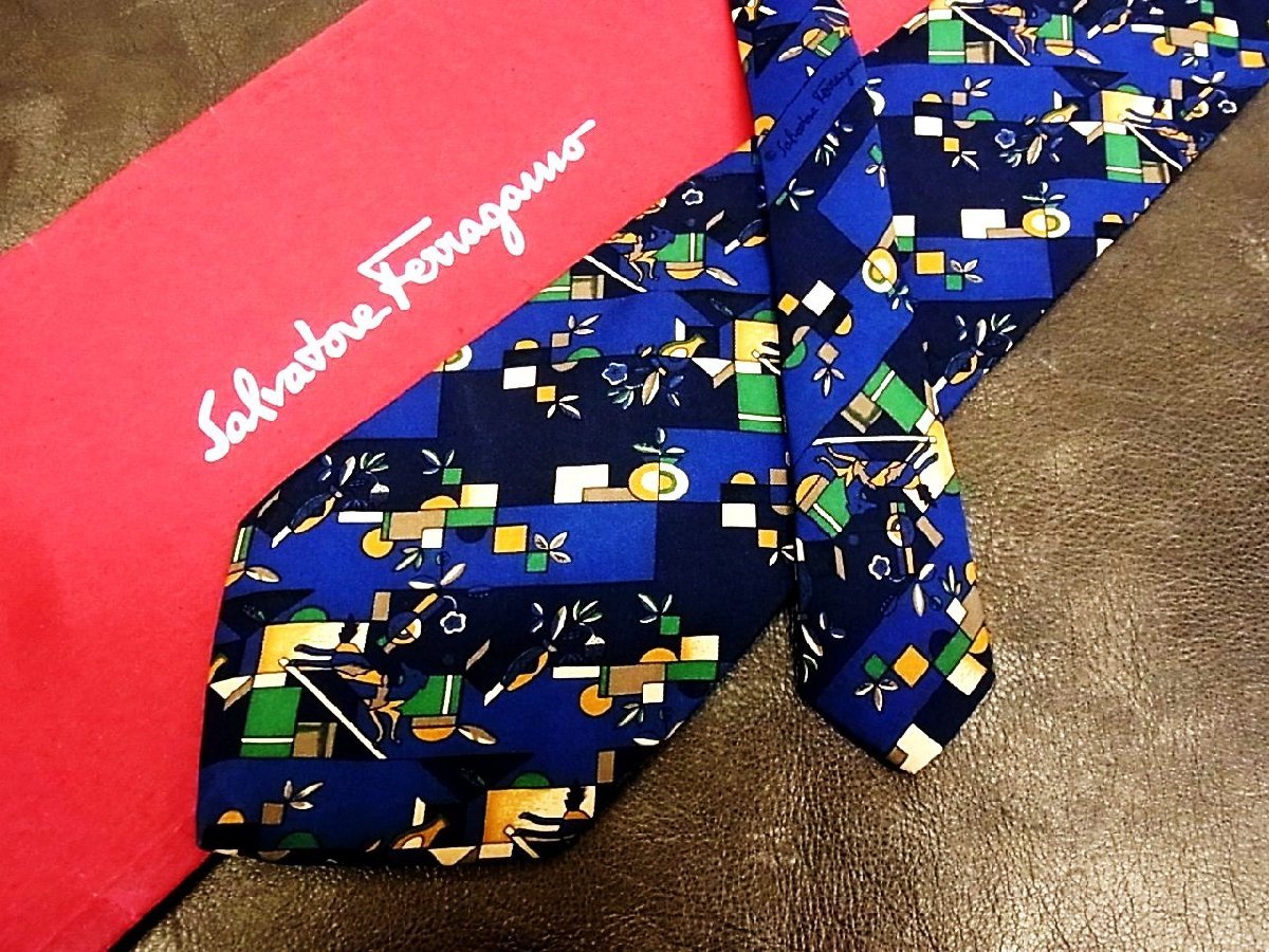 > ♪今週の特売980円~♪1489W♪状態並品【Ferragamo】フェラガモ【馬 植物 アート デザイン 柄】ネクタイ♪