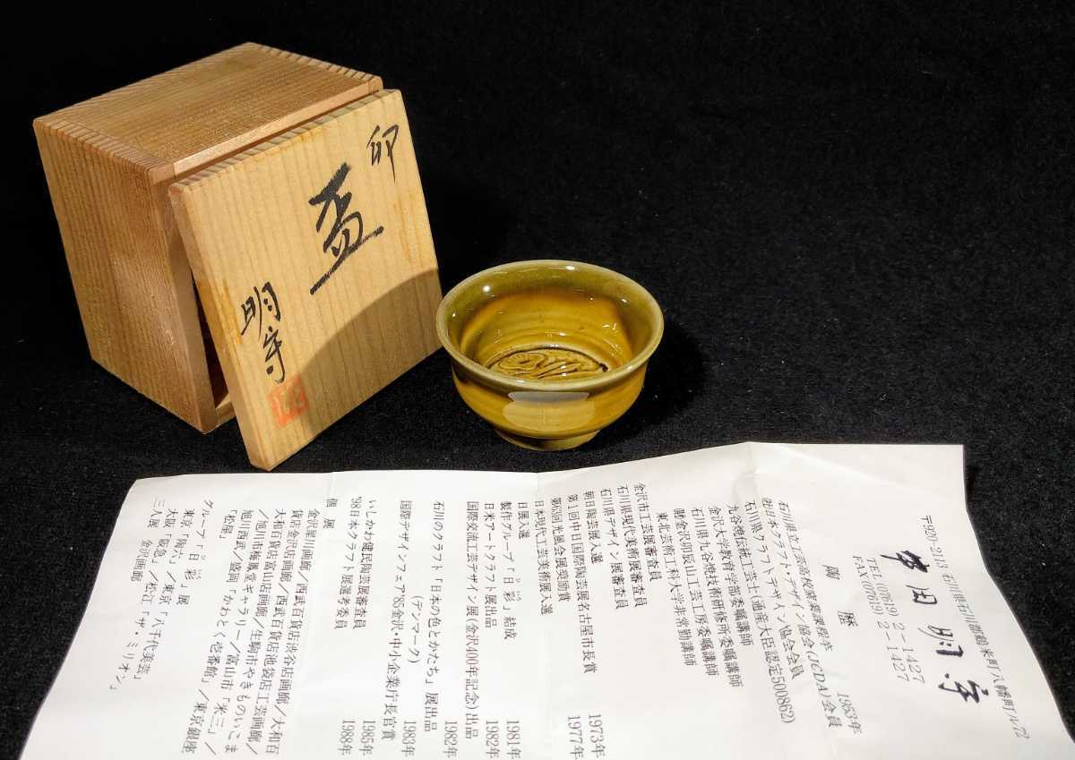 - 中田明守 「卯盃」 浮彫 兎絵 酒盃 共箱 ぐい呑 酒器 九谷焼 a-03i1186