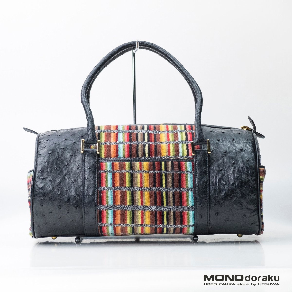- カラカラ オーストリッチ シェニール織 ボストンバッグ ブラック
