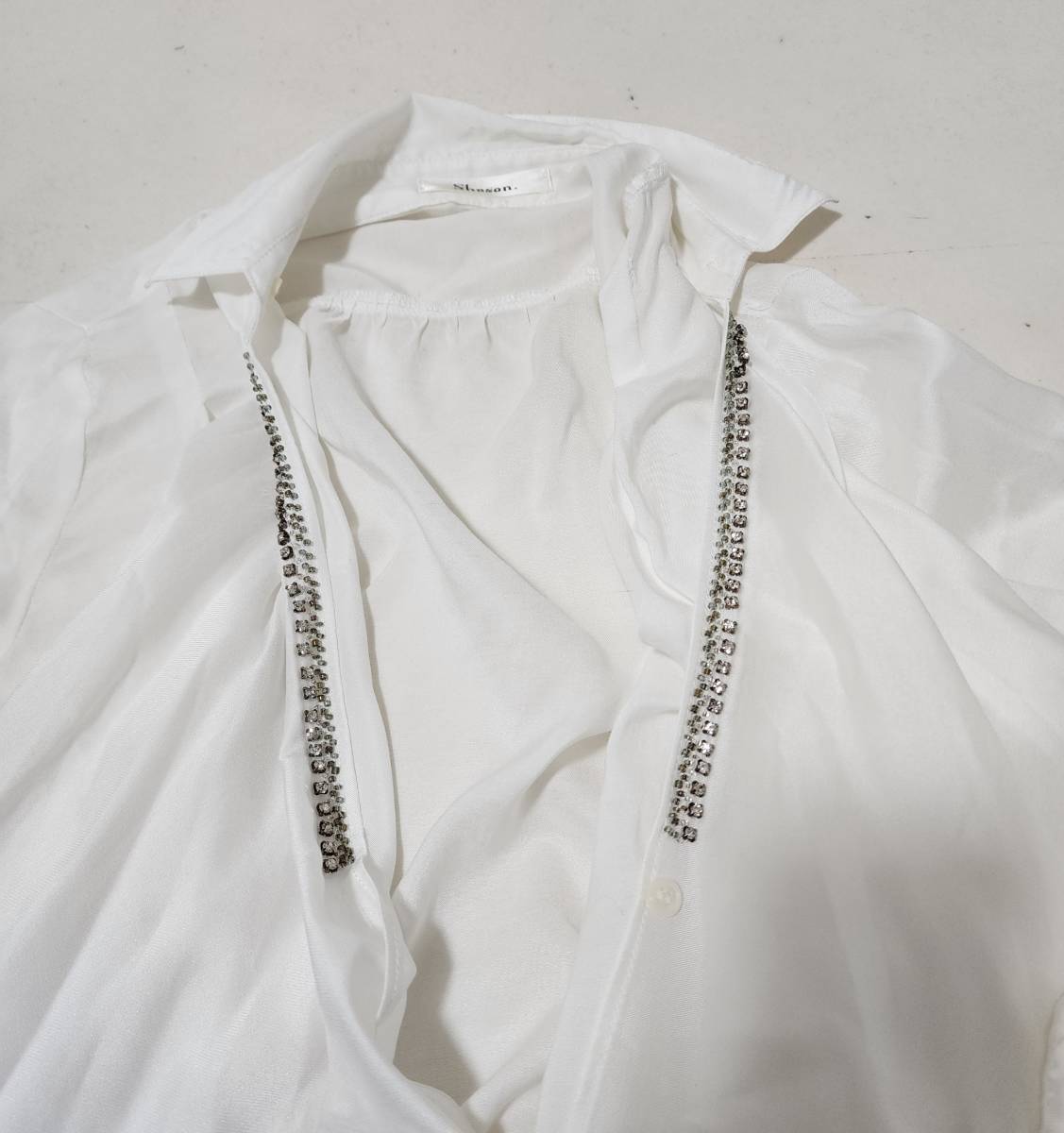 - ラインストーン シャツ風 ポンチョカーディ 白