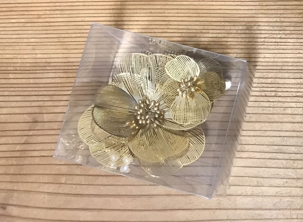 - 【2回使用】ふりふ★3Way髪飾り★メタルフラワー&チェーン&パールビーズ★ゴールド★和装★成人式★七五三等