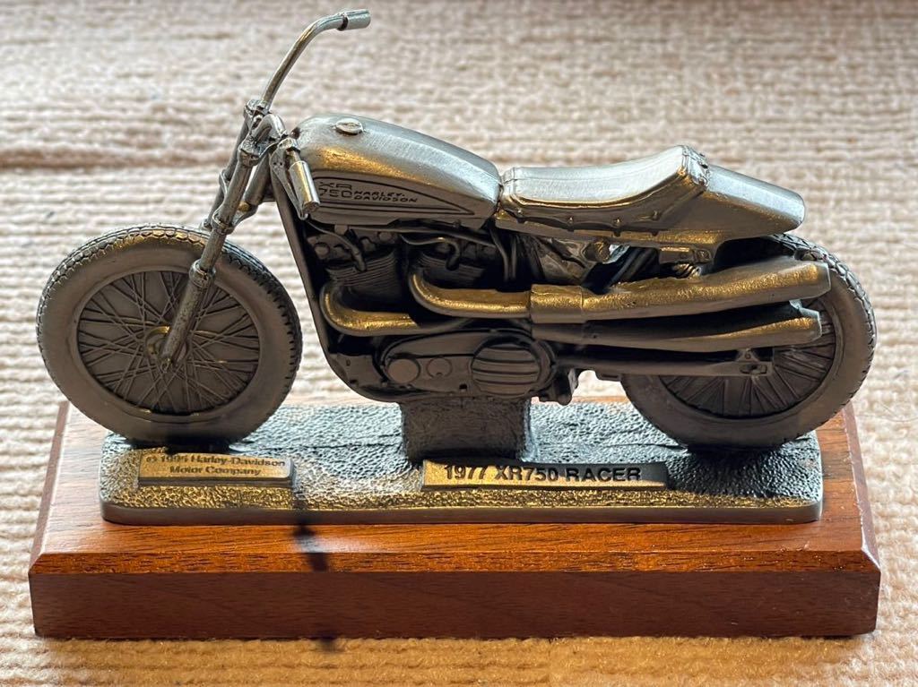 > ハーレー harley davidson 1977 XR750 racer pewter replica museum collection 木製台座 金属製 ピューター 美品 希少 重量感あり 高級