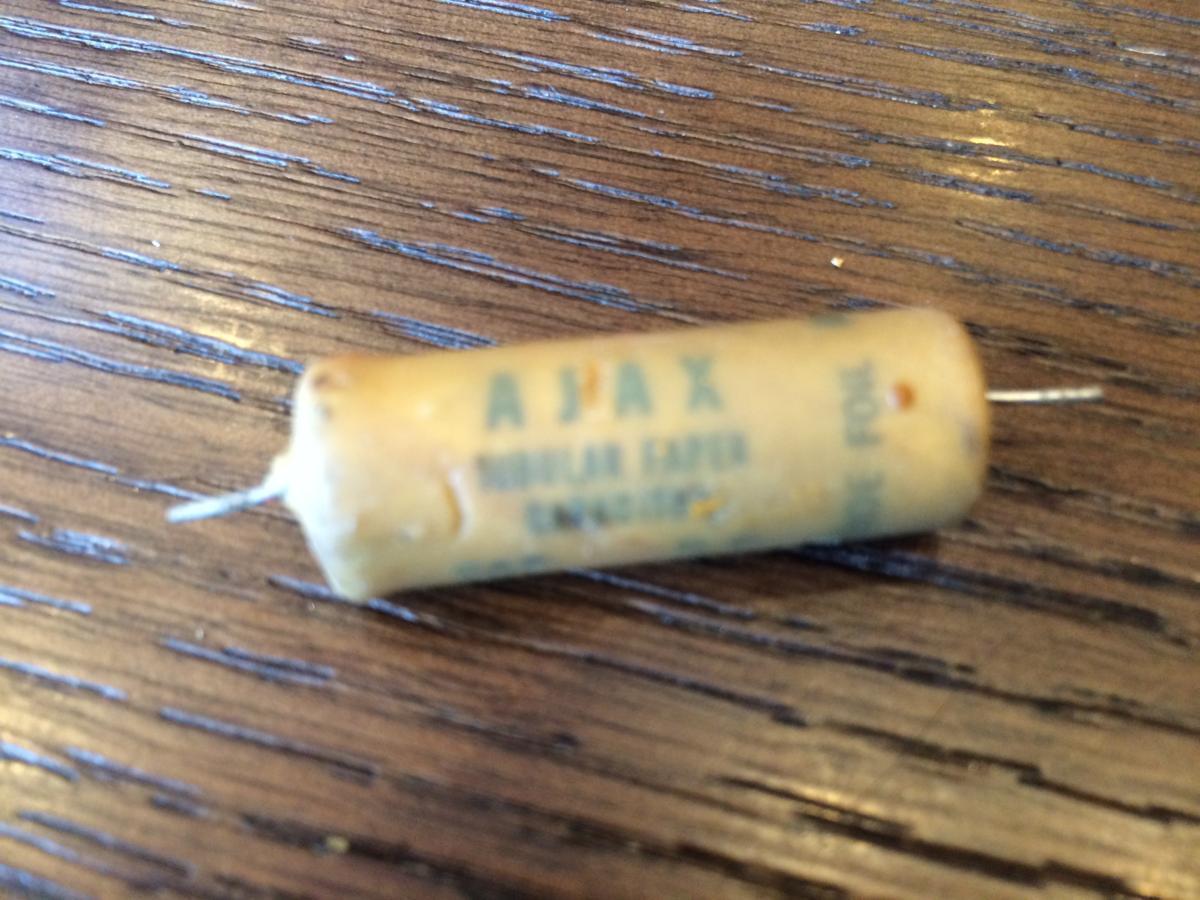 ビンテージ Ajax Wax コンデンサーです。ギターではハム、P90に最適、600vで張りのある音質です。またベースに人気のブランドです。その他電子部品向け。AjaxコンデンサーはFenderギター、アンプの純正部品に採用されるなど、良質な音で人気が高いブランドです。こちらのWaxタイプは最初期の物で最高峰の良質なコンデンサです。倍音豊かで深みがあり、レンジが広い良質なものです。Tigerと肩を並べることができる数少ないコンデンサで、世界的に数が少ない貴重なものです。大切にストックしておりましたが出品させて頂きます。----------------------------------------------------------------