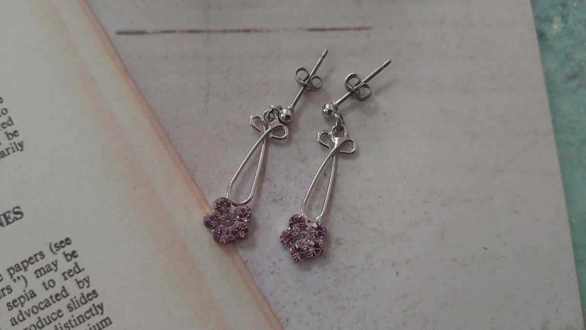 - □ピンクラインストーン×フラワーモチーフ×シルバーカラー・揺れるピアス□