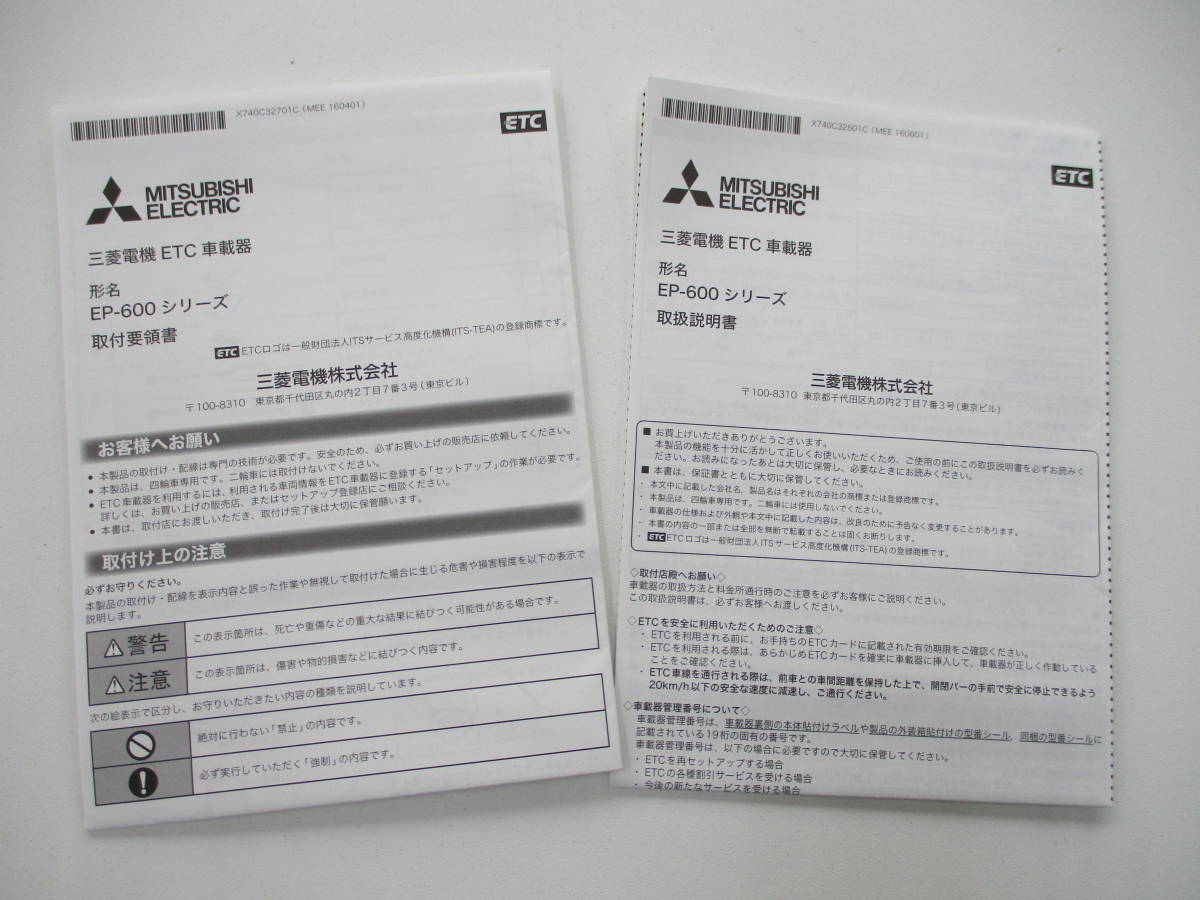 - 中古 三菱 ETC 取付要領書 取扱説明書 取説 付属品 セット EP-600 シリーズ 千葉県から発送 引き取り可能0円!