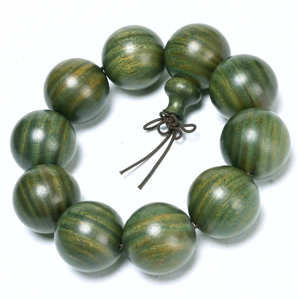 - [EasternStar] アルゼンチン 緑檀 グリーン サンダルウッド ブレスレット 数珠 念珠 木珠 25mm 10玉 小孔 ひょうたん
