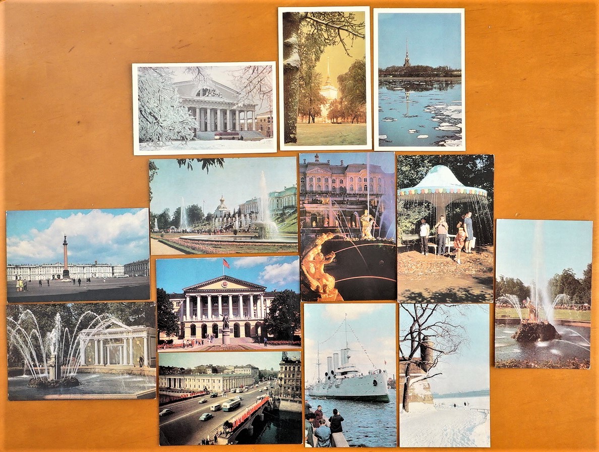 - レニングラード サンクトペテルブルク ペテルゴフ 絵葉書13枚 1971年頃 検:ソビエト連邦 ロシア観光 レーニン像 噴水庭園公園