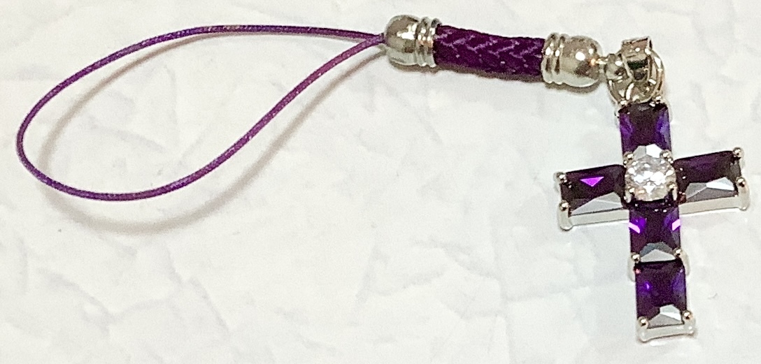 - キラキラ美しいクロス ストラップ*パープル,ビジュー,組紐/送85