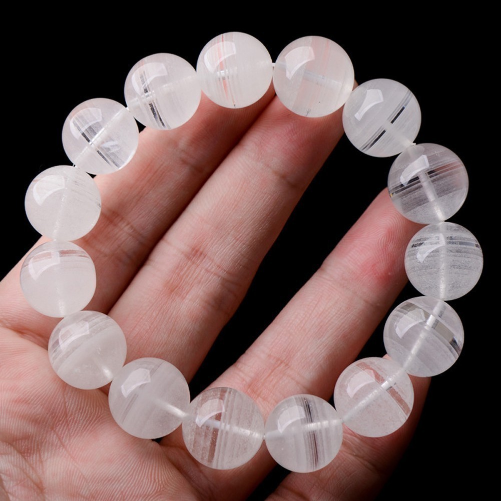 - [EasternStar] 海外発送 ホワイト ファントムクォーツ 千層 幽霊水晶 特選 ブレスレット 玉サイズ18mm 腕回り約21cm