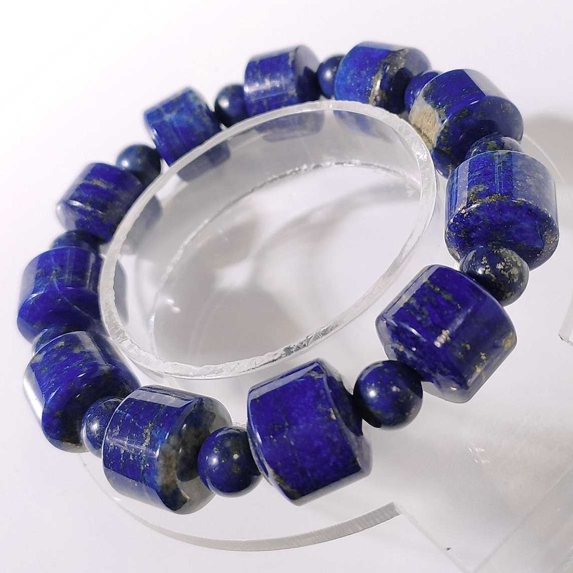 - 高品質 無着色 ラピスラズリ ブレスレット パイライト 円柱 丸玉