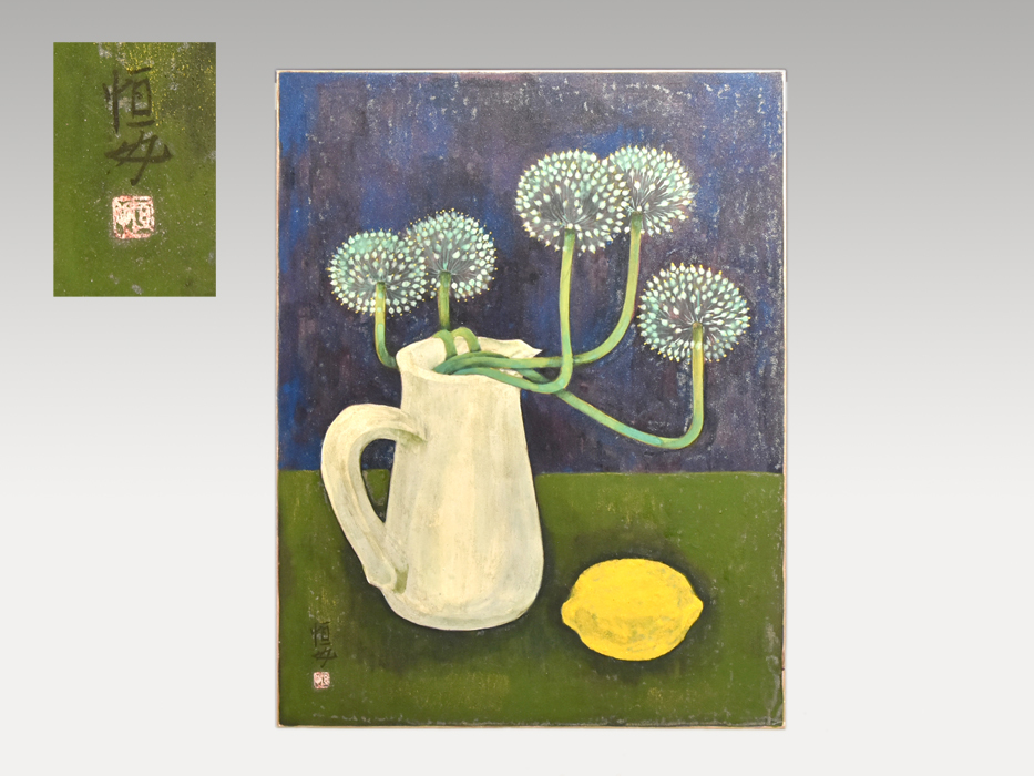 - 【真作】岡恒也 色紙に岩彩 日本画 静物画 絵画 書画 アート インテリア y0929