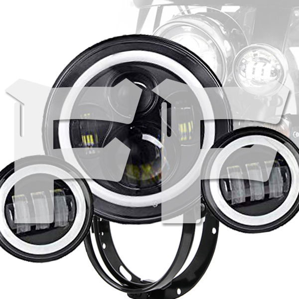 - 送料無料● ハーレー CREE 60W 7インチ LED ヘッドライト 4.5インチ LED フォグランプ オートバイ ブラック DOT承認品 1セット