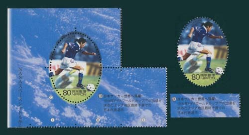 > 日本サッカー『1998年ワールドカップ出場』 アジア地区最終予選☆記念切手◆野人・岡野◆FIFAフランス大会☆2枚セット◆楕円形切手◆未使用