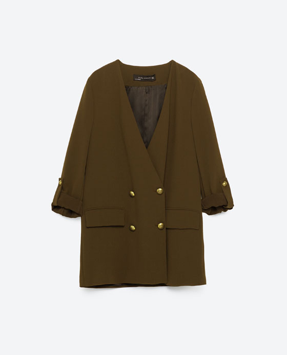 > /[ザラ ZARA ダブル ボタン付き ジャケット 10990円 カーキ ロールアップスリーブ フルイド シワになりにくい とろみ 洗濯済み 匿名発送]