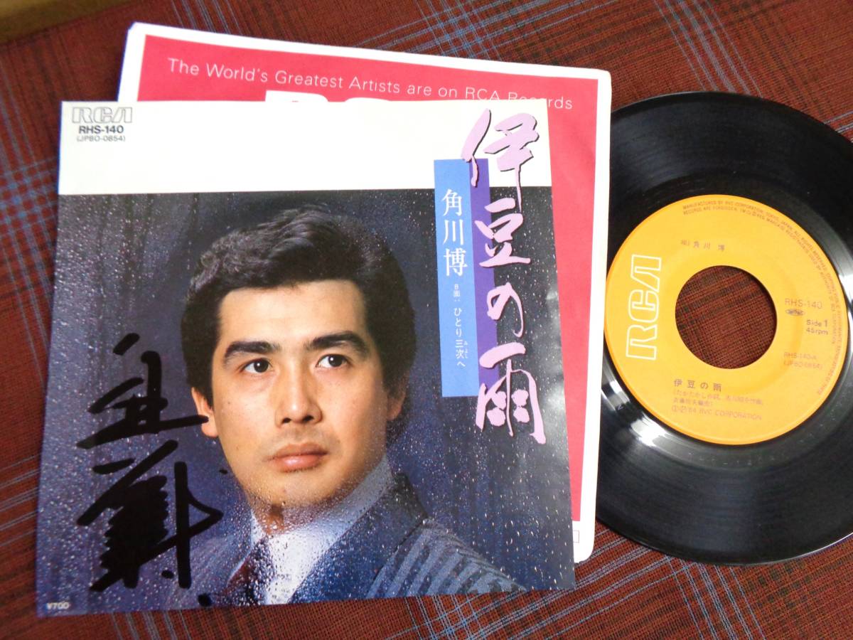 - e#4509◆EP◆ 角川博 - 伊豆の雨 / ひとり三次へ サイン入 昭和 歌謡 RHS-140