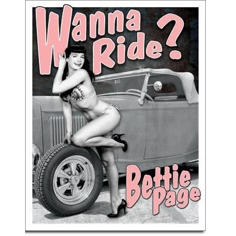 - ブリキ看板 Bettie Page - Wanna Ride 1791 ティンサインプレート ティンサインボード アメリカン雑貨 エンボス看板 インテリア雑貨 SHOP