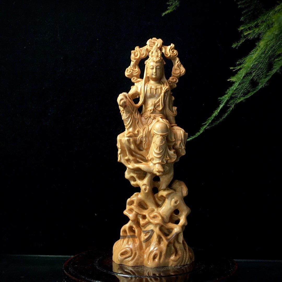 - 【ケーリーフショップ】仏師で仕上げ品 坐藤自在観音 彫刻工芸品