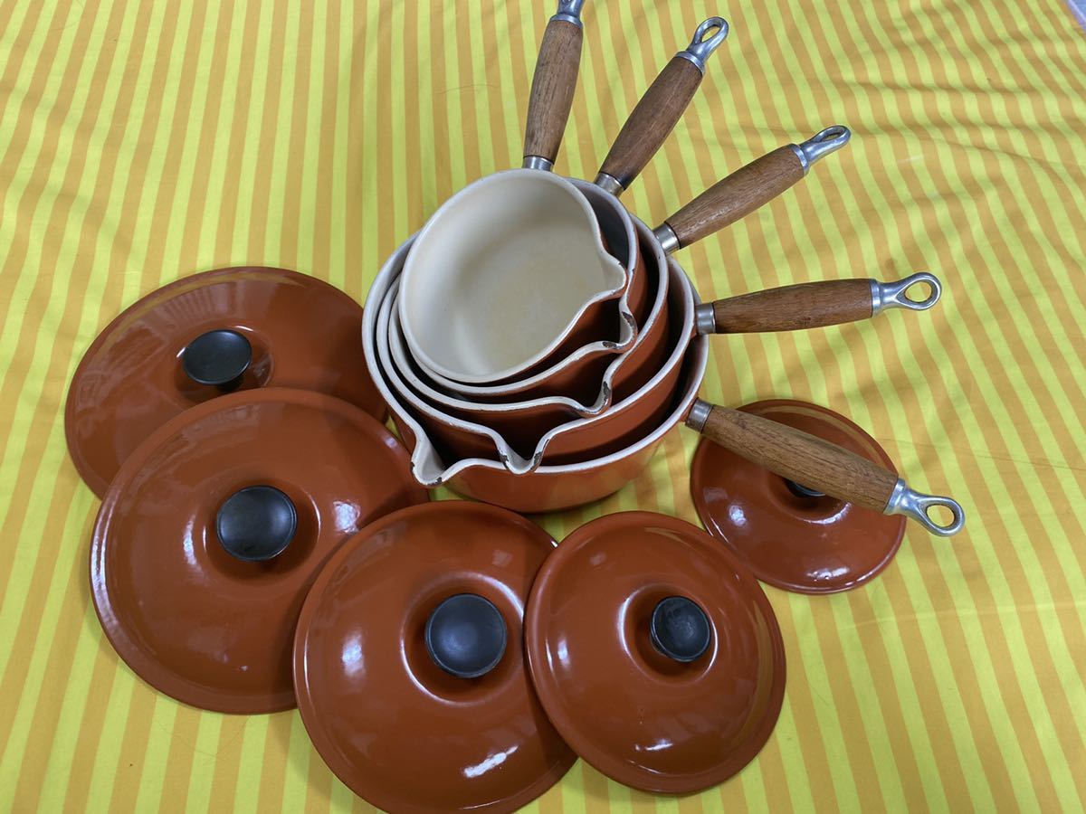 - ル・クルーゼ ビンテージ ウッドハンドル 片手鍋 14 16 18 20 22 5個セット LE CREUSET