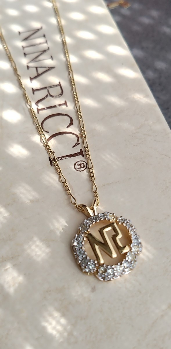 - NINA RICCI ロゴ ゴールドカラーペンダントネックレス ラインストーン 美品