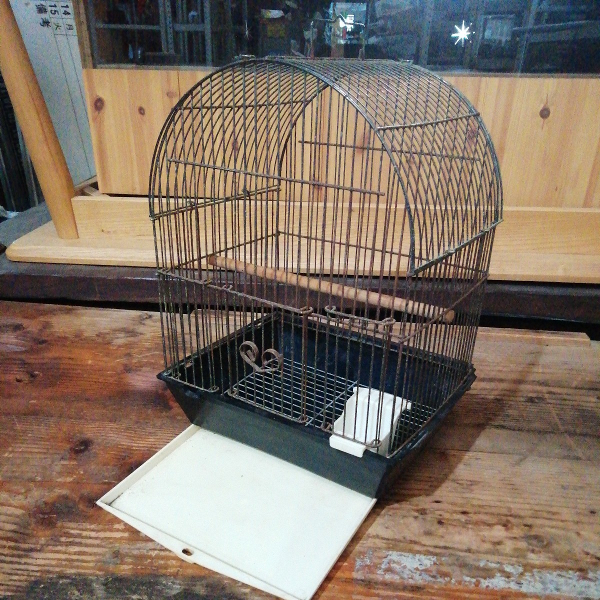 - 佐賀発 鳥かご 昭和レトロ ガーデニング antique ヴィンテージ 鉄製 丸型 (約高390×横285×奥行き230mm) ゲージ カゴ 野鳥 バード