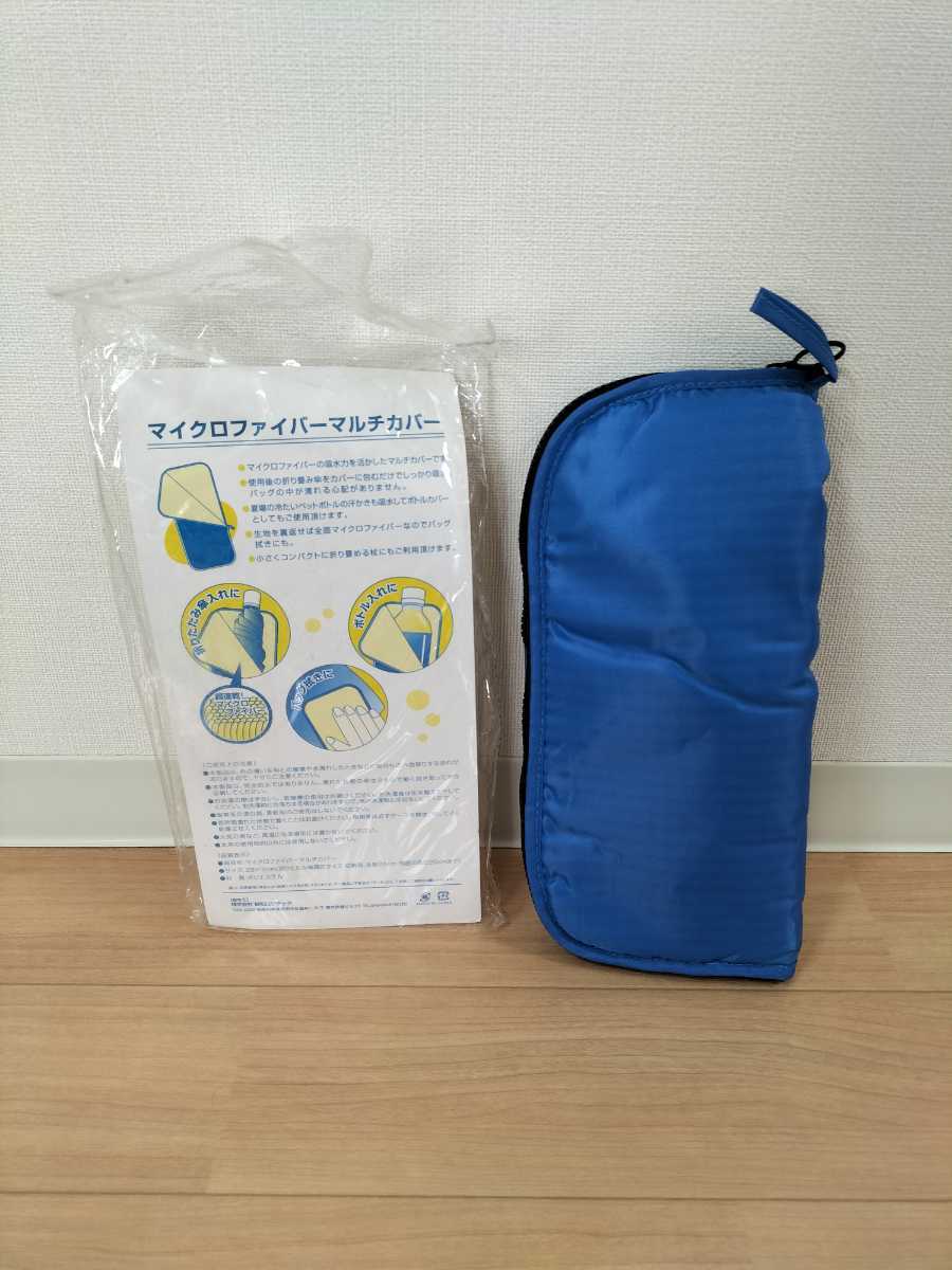 > マイクロファイバーマルチカバー 超速乾!折りたたみ傘カバー ペットボトル入れやバッグ拭きetc ブルー