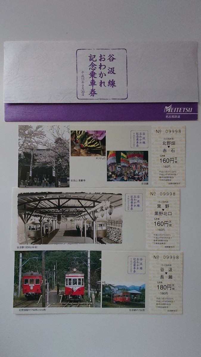 - ★名鉄★谷汲線おわかれ記念乗車券★平成13年 さよなら記念乗車券