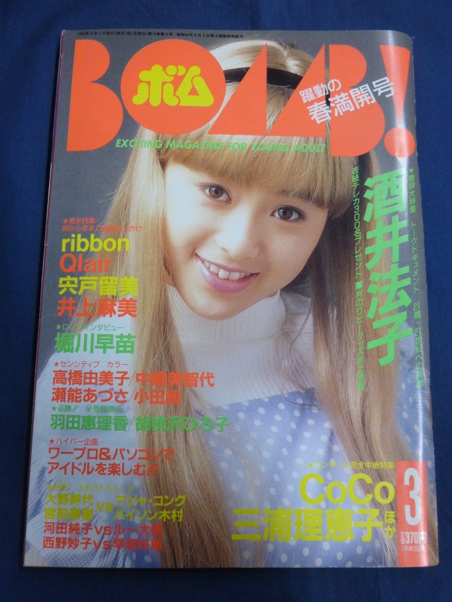 > ○ ボム BOMB 1992年3月号 酒井法子 高橋由美子 CoCo 三浦理恵子