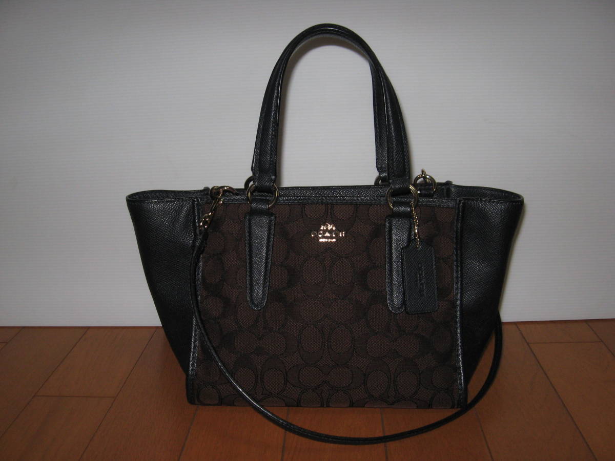 - 稀少即決 コーチ COACH ハンドバッグ 斜め掛けショルダーバッグ 2way 紺色x茶色 33860 クロスビー キャリーオール