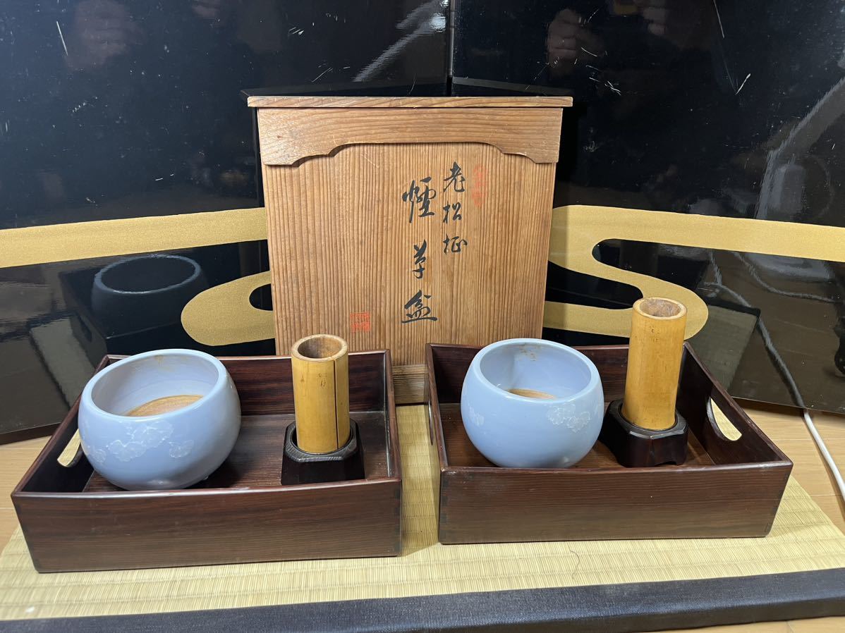 - 木工芸 幻の名工 船大工 左官研斎 煙草盆 一対 老松 共箱