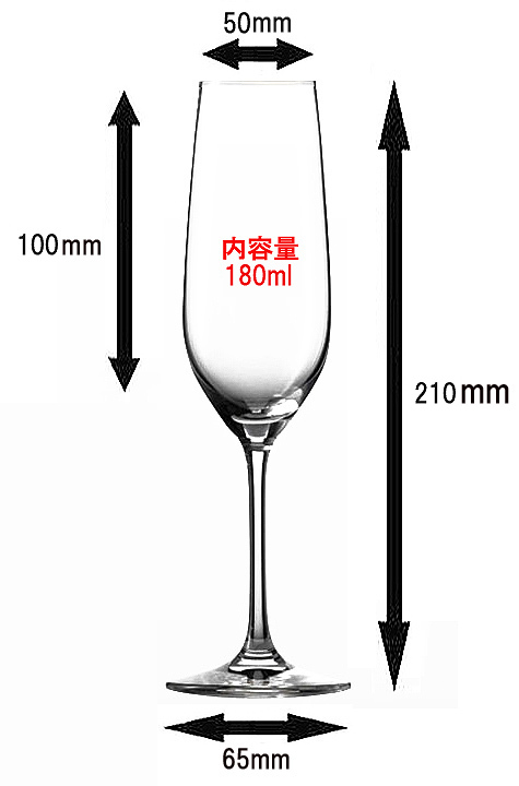 > 高級スパークリングフルートグラス容量180ml*高さ210mmXグラス口径直径50mm/6個セット/倉庫デッドストック品*新品(在庫残り僅か)